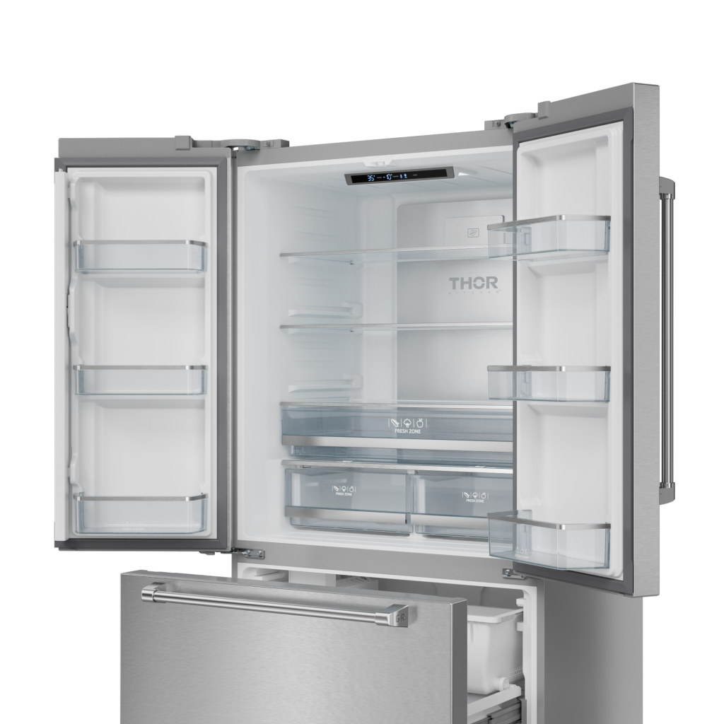Experience the perfect balance of performance and design with the 36" 20.3 cu. ft. French Door Counter Depth Refrigerator from the Gordon Ramsay by Thor Kitchen Collection. Combining advanced cooling technology with spacious, customizable interiors, this refrigerator ensures your ingredients stay fresher for longer, while adding a touch of elegance to your kitchen.