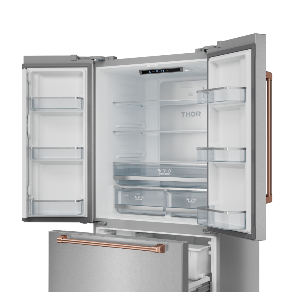 Experience the perfect balance of performance and design with the 36" 20.3 cu. ft. French Door Counter Depth Refrigerator from the Gordon Ramsay by Thor Kitchen Collection. Combining advanced cooling technology with spacious, customizable interiors, this refrigerator ensures your ingredients stay fresher for longer, while adding a touch of elegance to your kitchen.