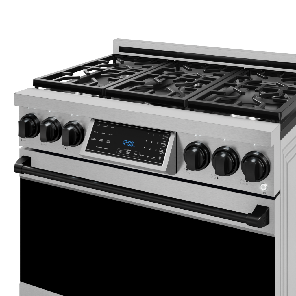 Gordon Ramsay by THOR Kitchen 36" 6.0 cu. ft. Professional Propane Gas Range with Tilt Panel Touch Control, Self-Clean and Air Fry in Stainless Steel with Black Accents, RSG36LP-BLK
