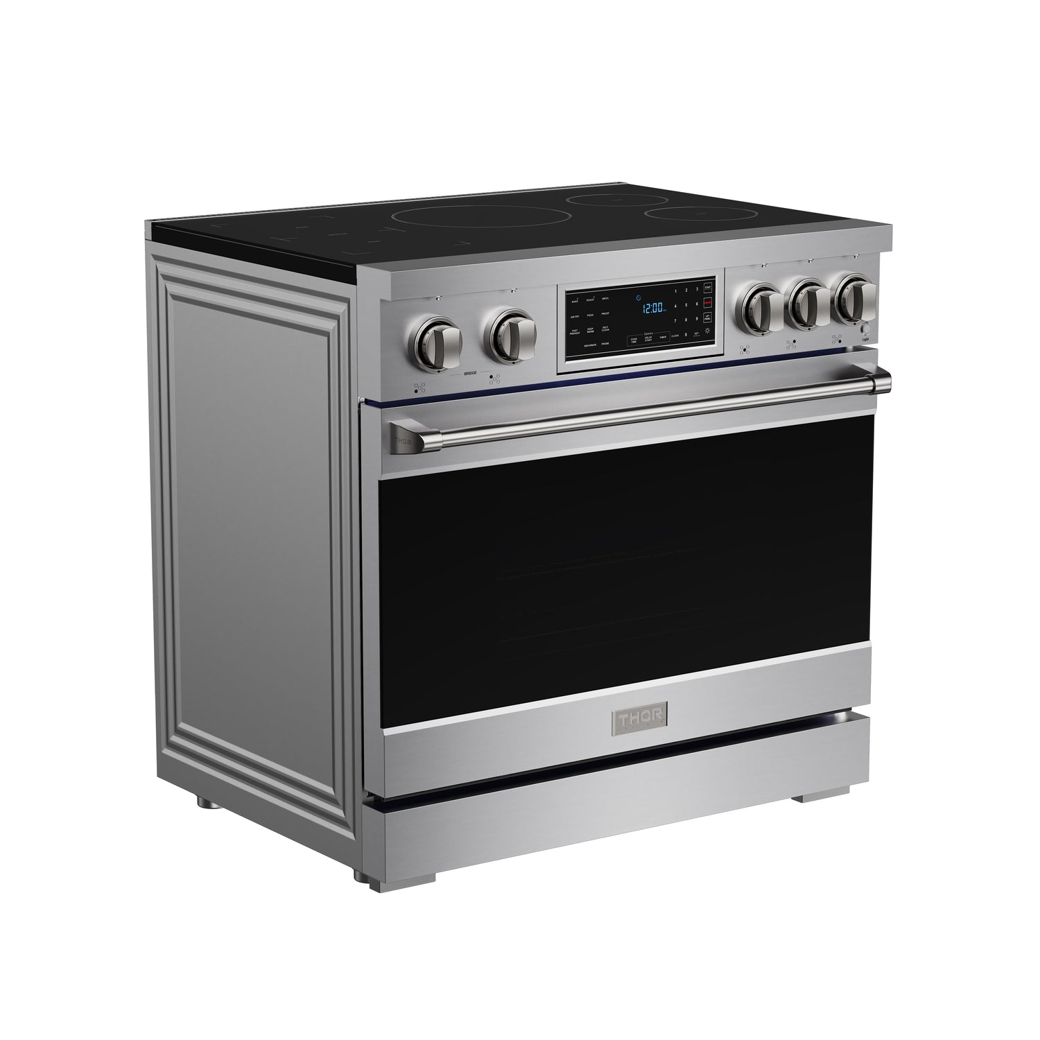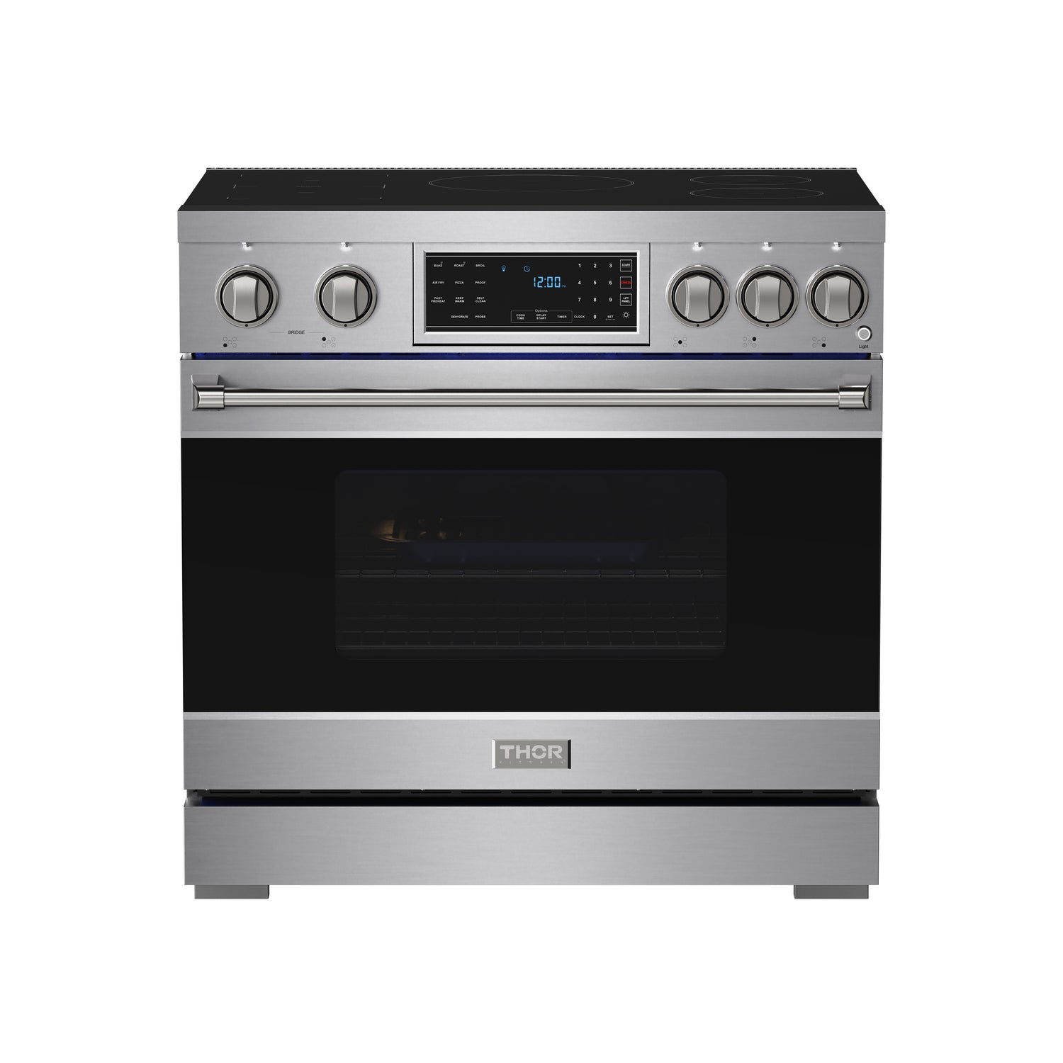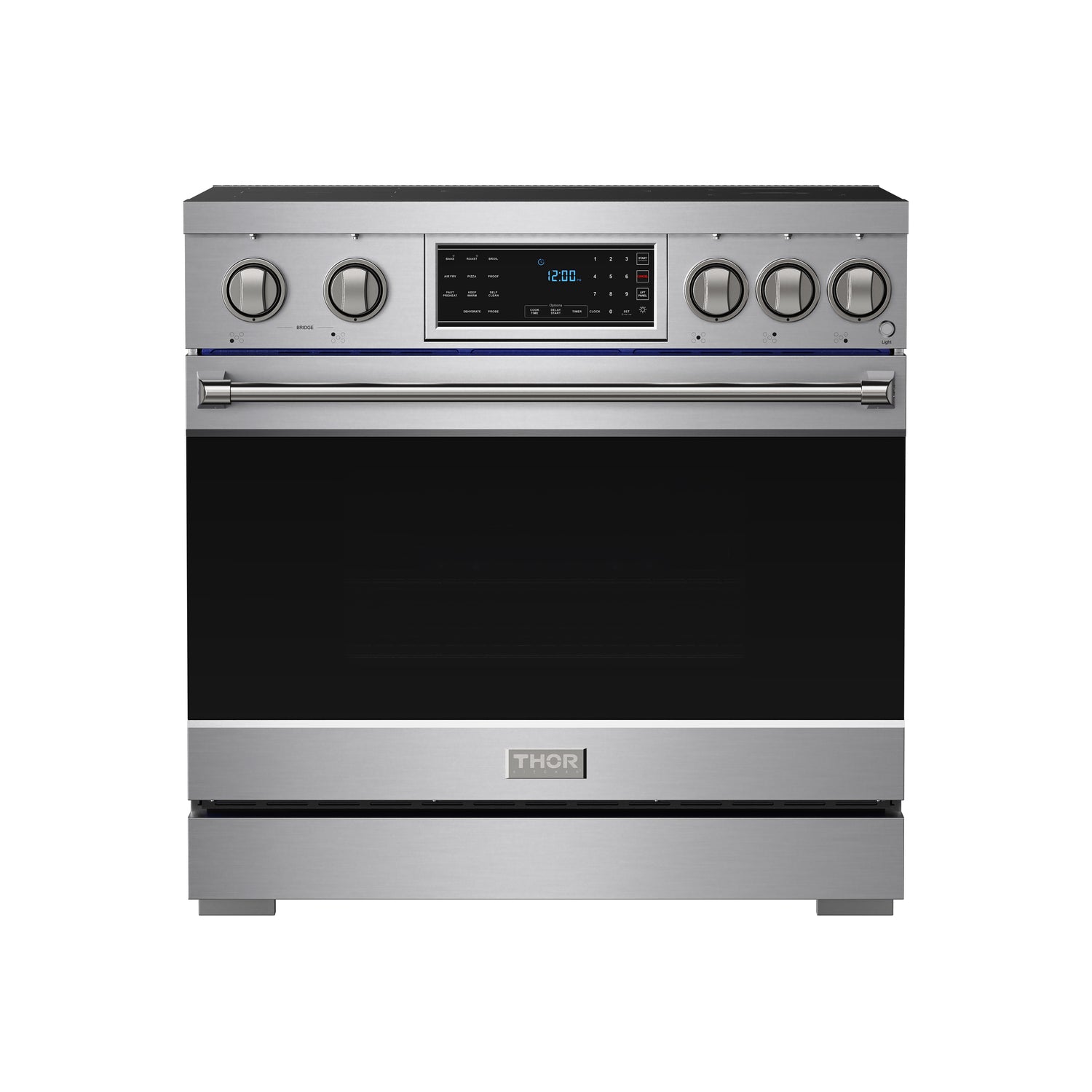Gordon Ramsay by THOR Kitchen 36" 6 cu. ft. Professional Smooth Glass Top Induction Range with Tilt Panel Touch Control, Self-Clean and Air Fry in Stainless Steel, RSI36