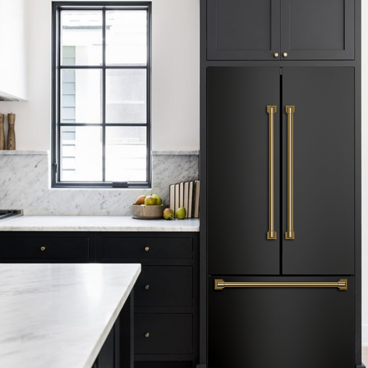 Gordon Ramsay by THOR Kitchen Package - 30" Electric Range, 30" Refrigerator with Ice Maker and Dishwasher in Black Matte with Bronze Accents, AP-RSE30B-BRZ-1