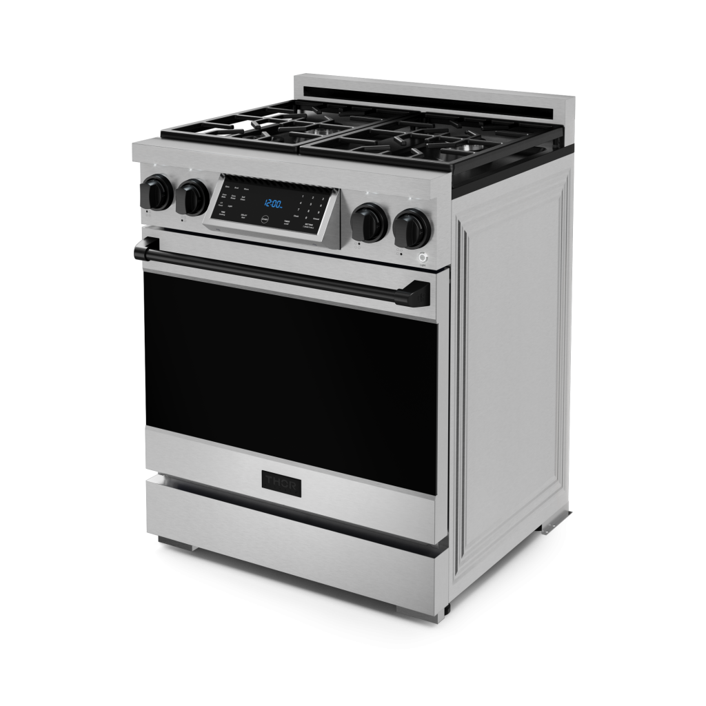Gordon Ramsay by THOR Kitchen Package - 30" Gas Range, 30" Refrigerator with Ice Maker and Dishwasher in Stainless Steel with Black Accents, AP-RSG30-BLK-1