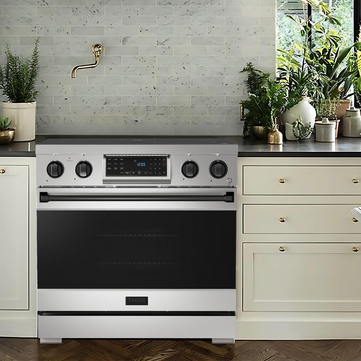 Designed for top-tier performance, the 36" Professional Electric Range from the Gordon Ramsay by Thor Kitchen Collection delivers exceptional precision and power. With high-performance burners, even heat distribution, and user-friendly controls, this range brings restaurant-quality cooking to your home, elevating every meal.