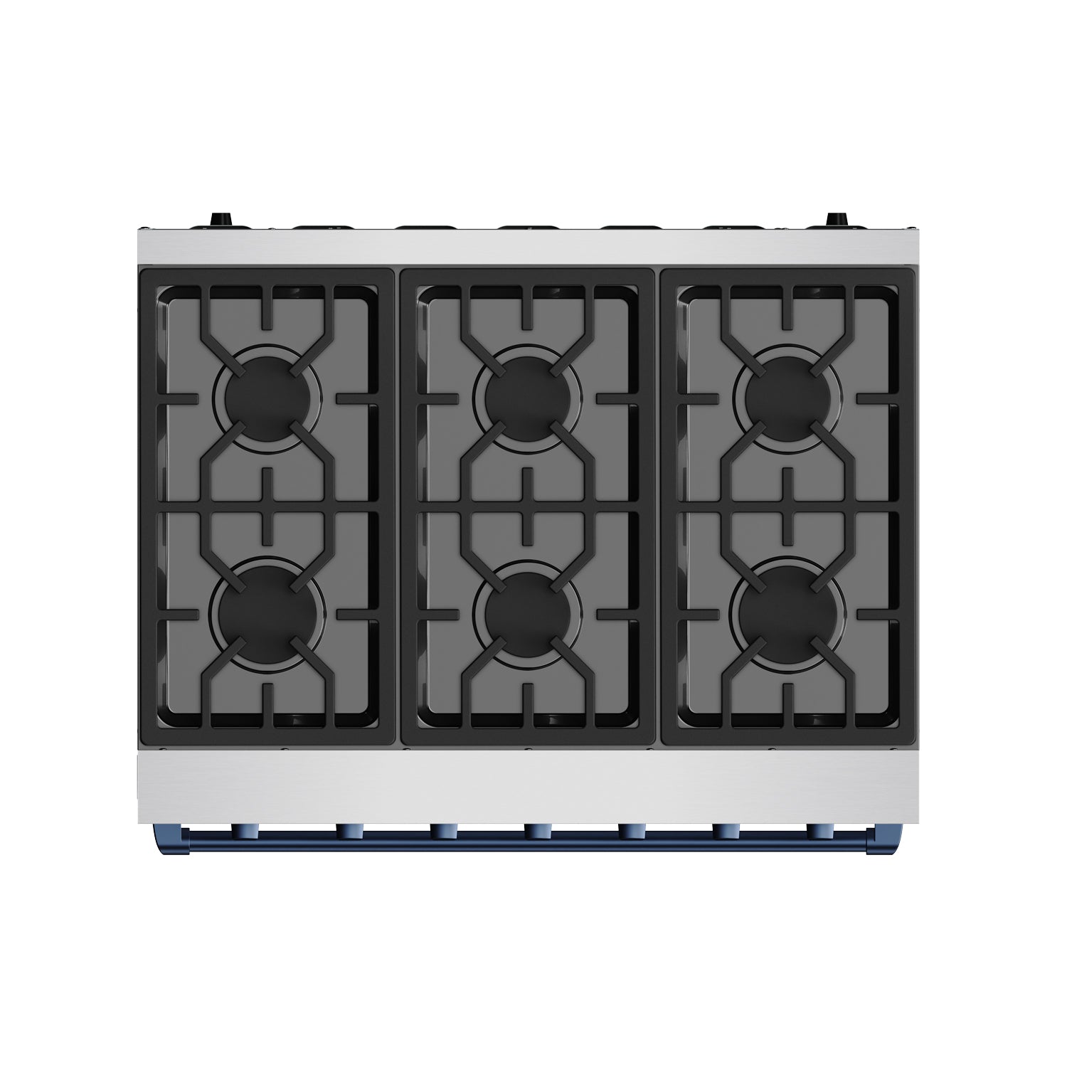 Gordon Ramsay by THOR Kitchen 36" 6 cu. ft. Professional Propane Gas Range with 6 Sealed Burners in Stainless Steel and Blue Accents, RSG36PLP-BLU