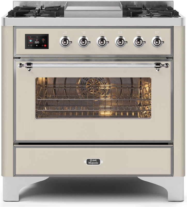 ILVE Majestic II 36" Dual Fuel Natural Gas Range in Antique White with Chrome Trim, UM09FDNS3AWC