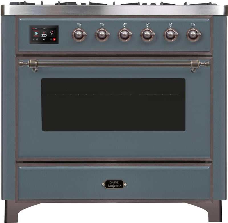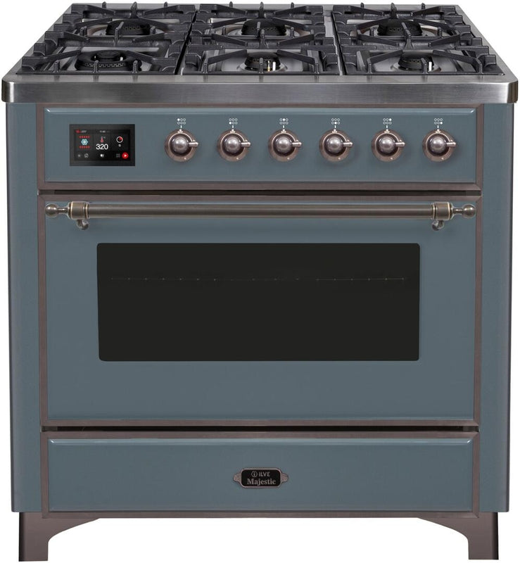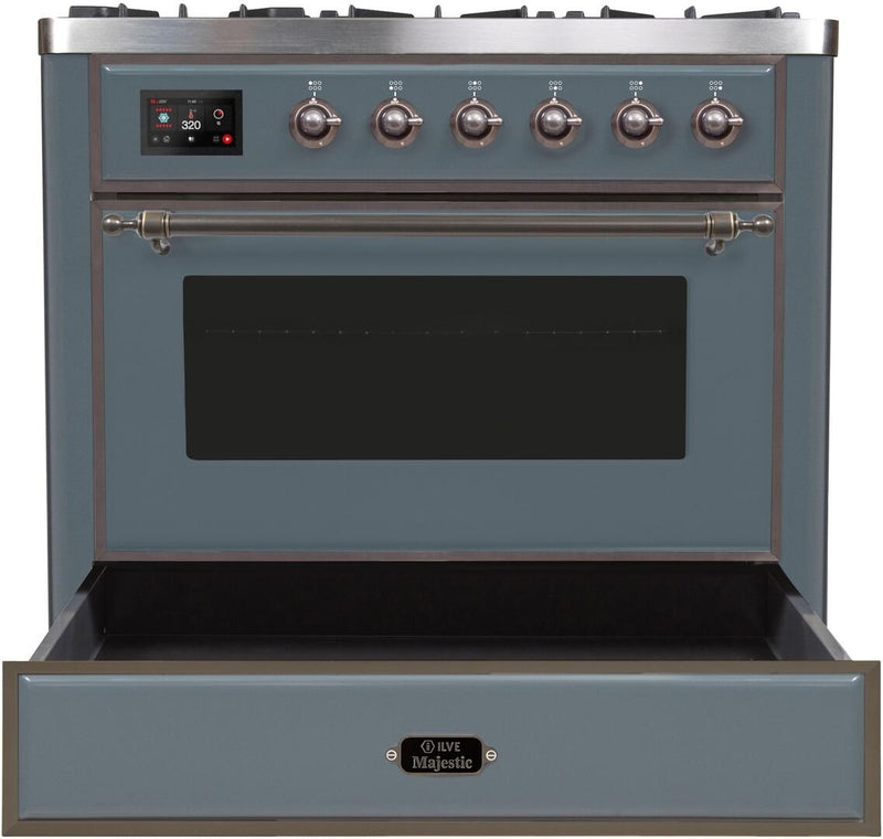 ILVE Majestic II 36" Dual Fuel Natural Gas Range in Blue Grey with Bronze Trim, UM09FDNS3BGB