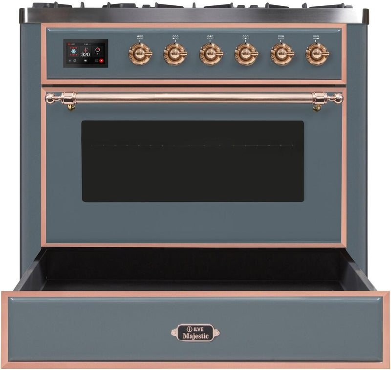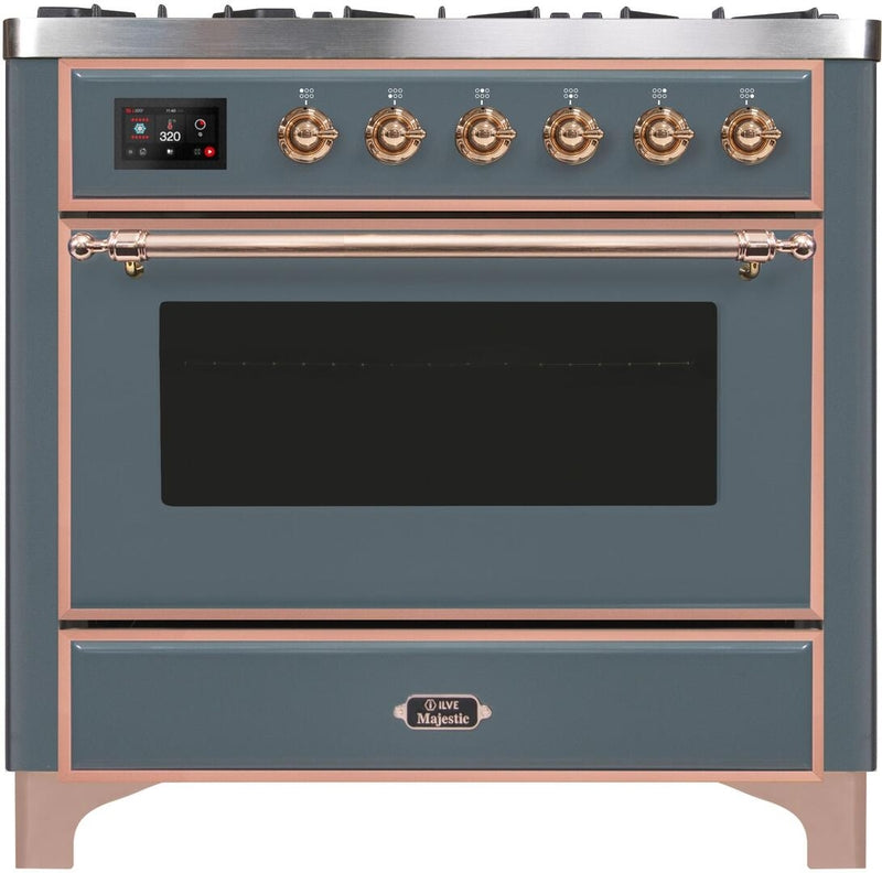 ILVE Majestic II 36" Dual Fuel Natural Gas Range in Blue Grey with Copper Trim, UM09FDNS3BGP