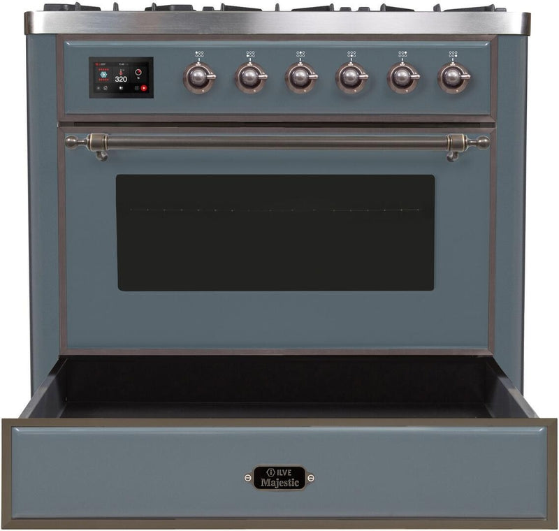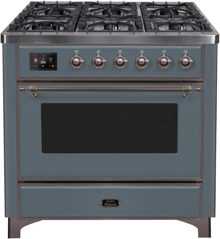 ILVE Majestic II 36" Dual Fuel Propane Gas Range in Blue Grey with Bronze Trim, UM09FDNS3BGBLP