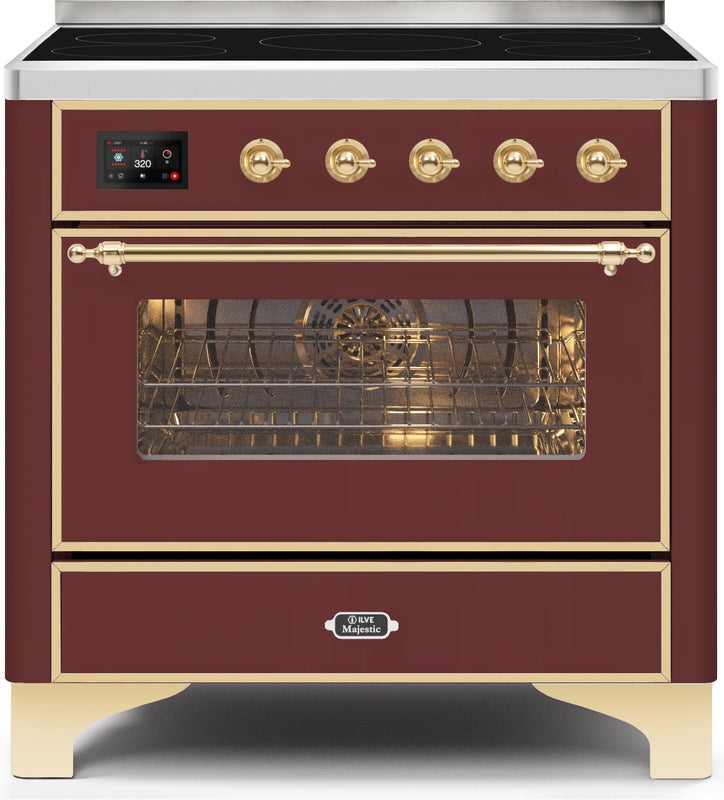 ILVE Majestic II 36" Induction Range with Element Stove and Electric Oven in Burgundy with Brass Trim, UMI09NS3BUG