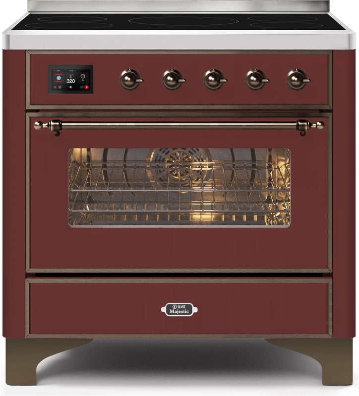 ILVE Majestic II 36" Induction Range with Element Stove and Electric Oven in Burgundy with Bronze Trim, UMI09NS3BUB
