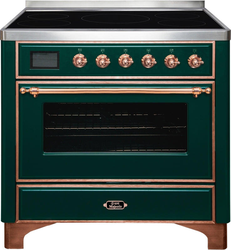 ILVE Majestic II 36" Induction Range with Element Stove and Electric Oven in Emerald Green with Copper Trim, UMI09NS3EGP