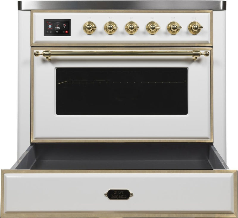 ILVE Majestic II 36" Induction Range with Element Stove and Electric Oven in White with Brass Trim, UMI09NS3WHG