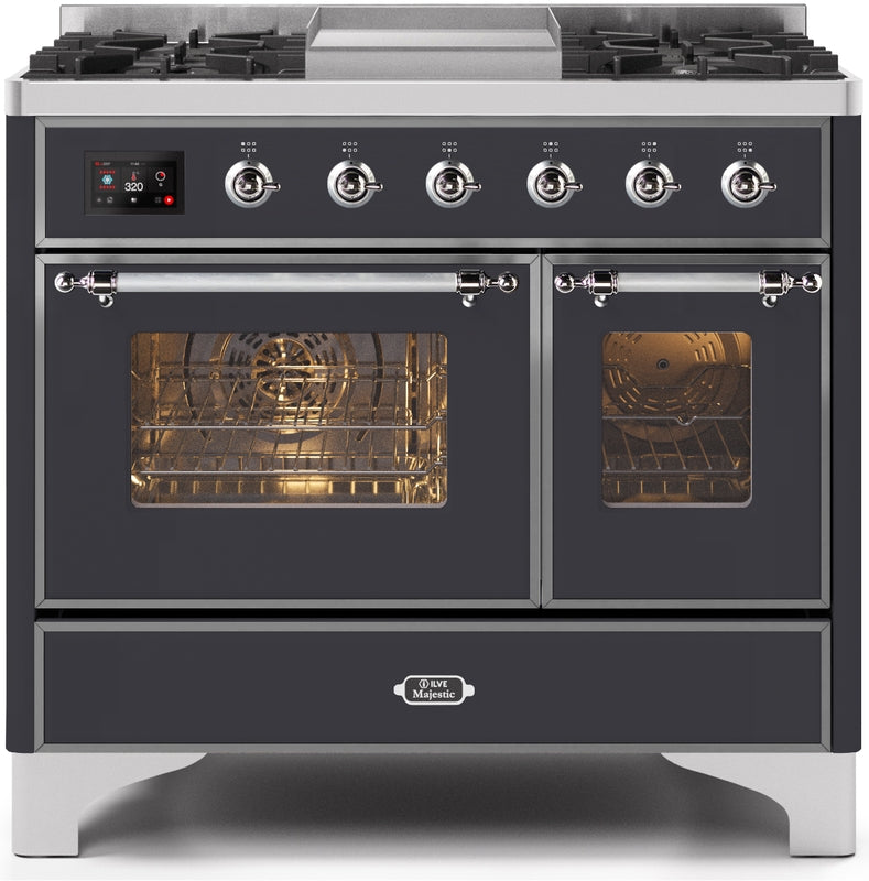 ILVE Majestic II 40" Dual Fuel Natural Gas Range in Matte Graphite with Chrome Trim, UMD10FDNS3MGC