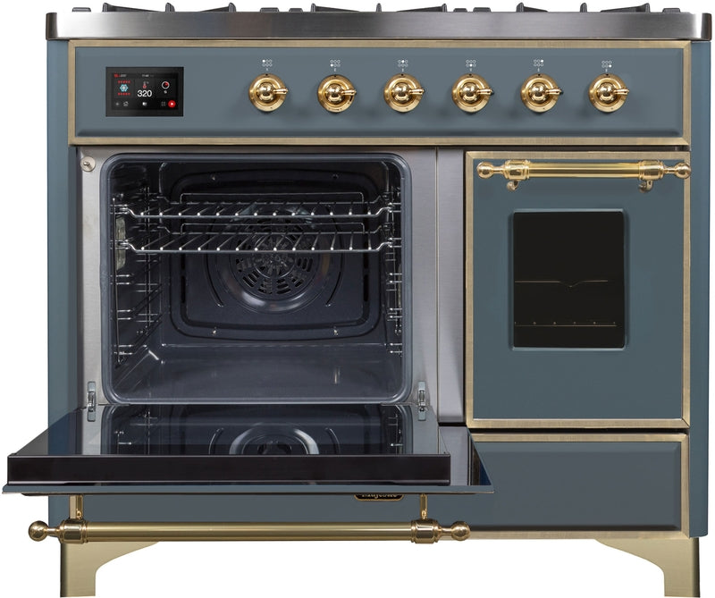ILVE Majestic II 40" Dual Fuel Propane Gas Range in Blue Grey with Brass Trim, UMD10FDNS3BGGLP