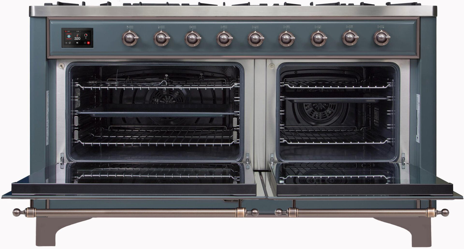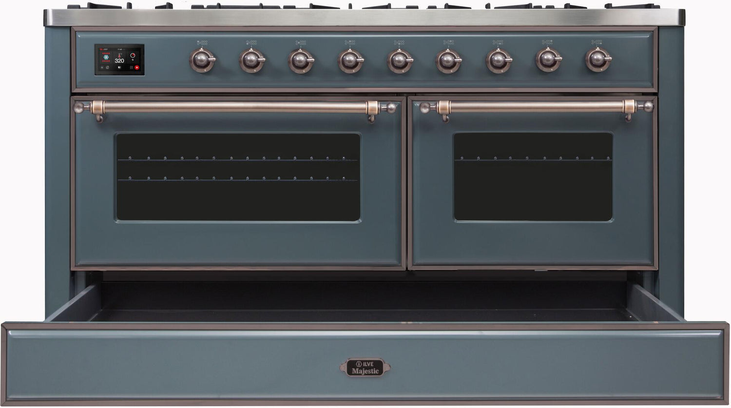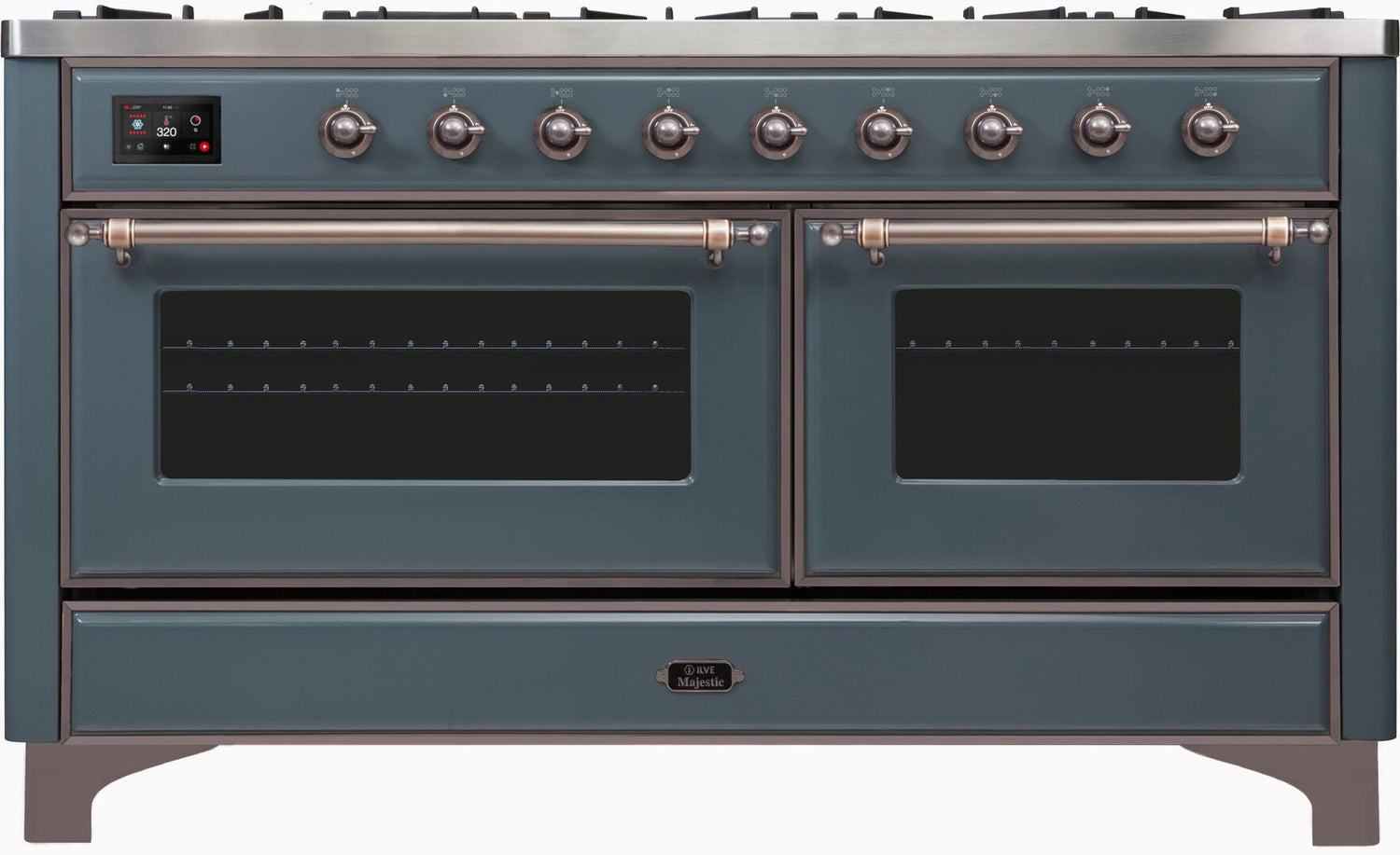 ILVE Majestic II 60" Dual Fuel Natural Gas Range in Blue Grey with Bronze Trim, UM15FDNS3BGB