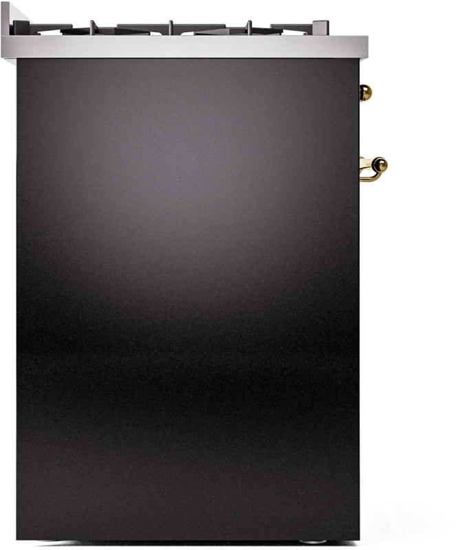 ILVE Nostalgie II 30" Dual Fuel Natural Gas Range in Black with Brass Trim, UP30NMPBKG