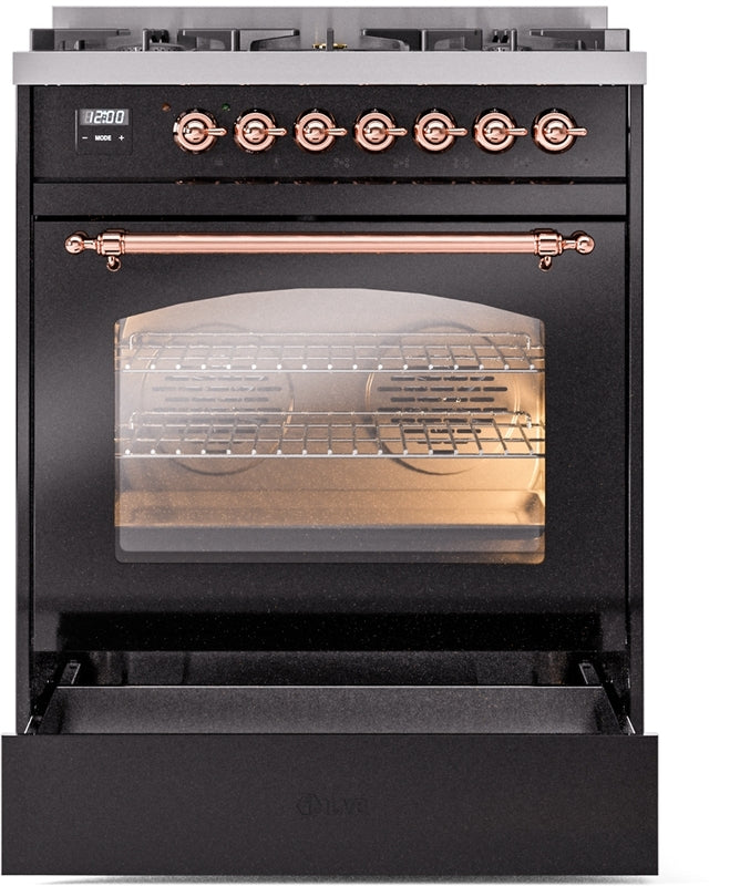 ILVE Nostalgie II 30" Dual Fuel Natural Gas Range in Black with Copper Trim, UP30NMPBKP