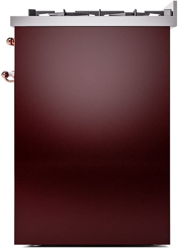 ILVE Nostalgie II 30" Dual Fuel Natural Gas Range in Burgundy with Copper Trim, UP30NMPBUP
