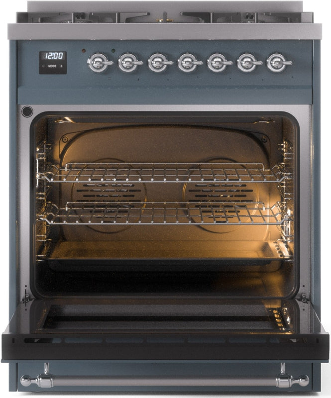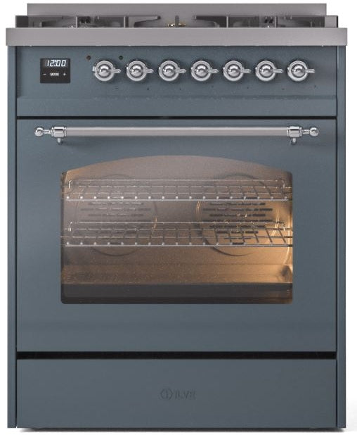 ILVE Nostalgie II 30" Dual Fuel Propane Gas Range in Blue Grey with Chrome Trim, UP30NMPBGCLP