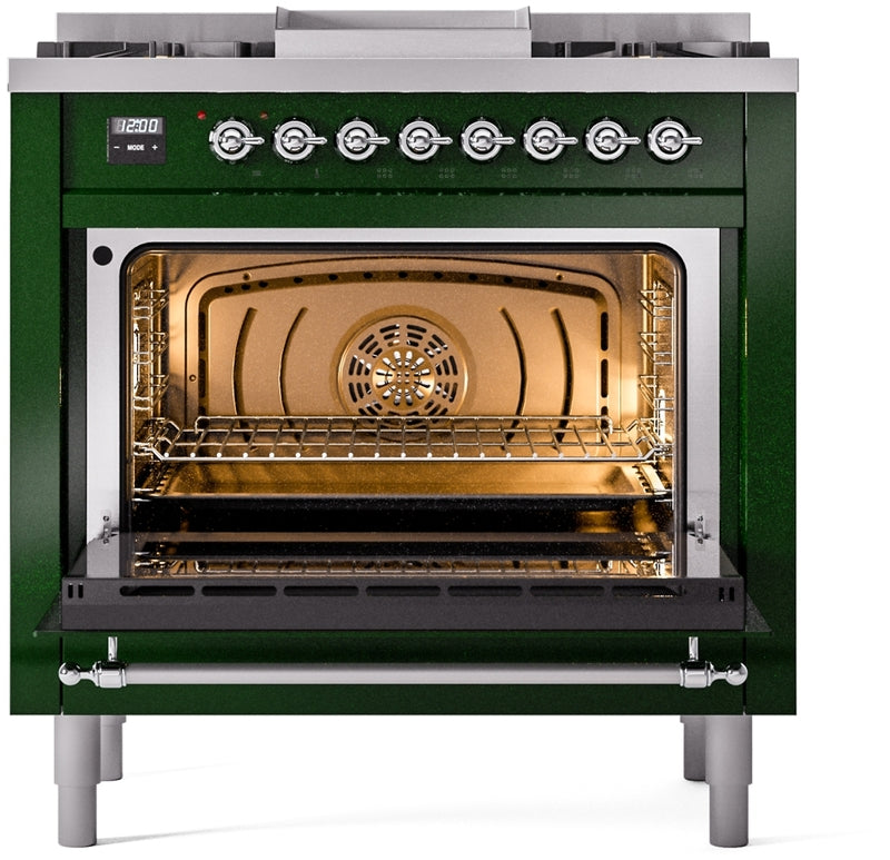 ILVE Nostalgie II 36" Dual Fuel Propane Gas Range in Emerald Green with Chrome Trim, UP36FNMPEGCLP