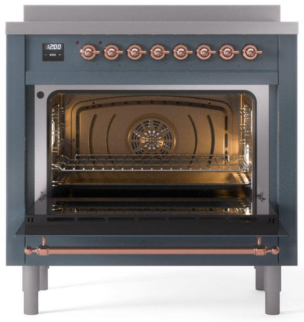 ILVE Nostalgie II 36" Induction Range with Element Stove and Electric Oven in Blue Grey with Copper Trim, UPI366NMPBGP