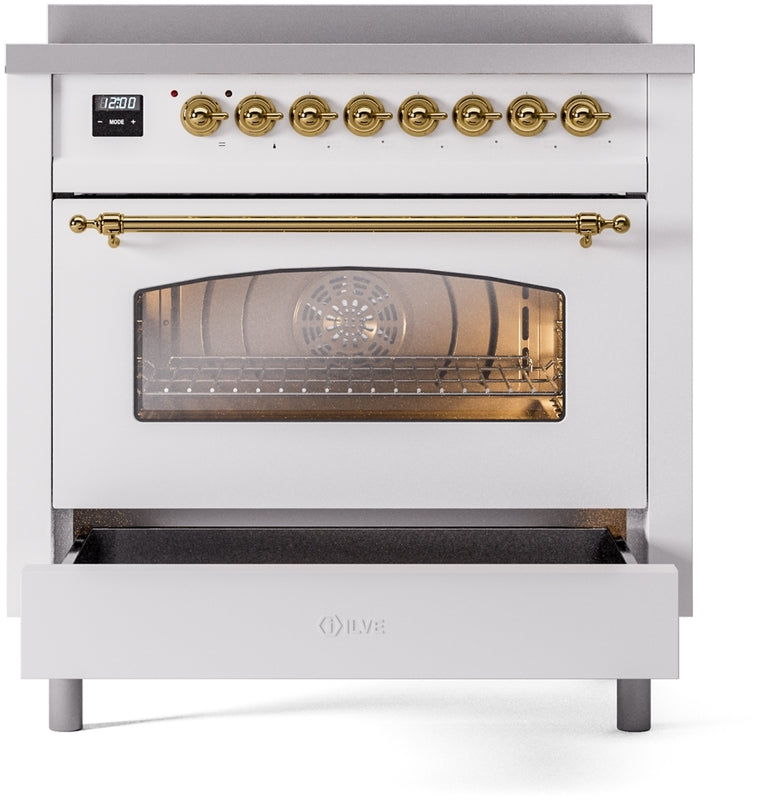 ILVE Nostalgie II 36" Induction Range with Element Stove and Electric Oven in White with Brass Trim, UPI366NMPWHG