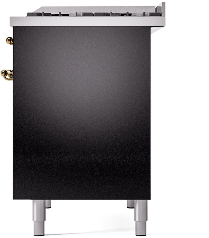 ILVE Nostalgie II 40" Dual Fuel Natural Gas Range in Black with Brass Trim, UPD40FNMPBKG