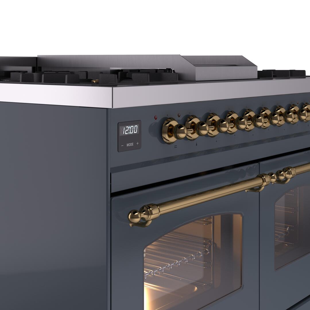 ILVE Nostalgie II 40" Dual Fuel Natural Gas Range in Blue Grey with Brass Trim, UPD40FNMPBGG