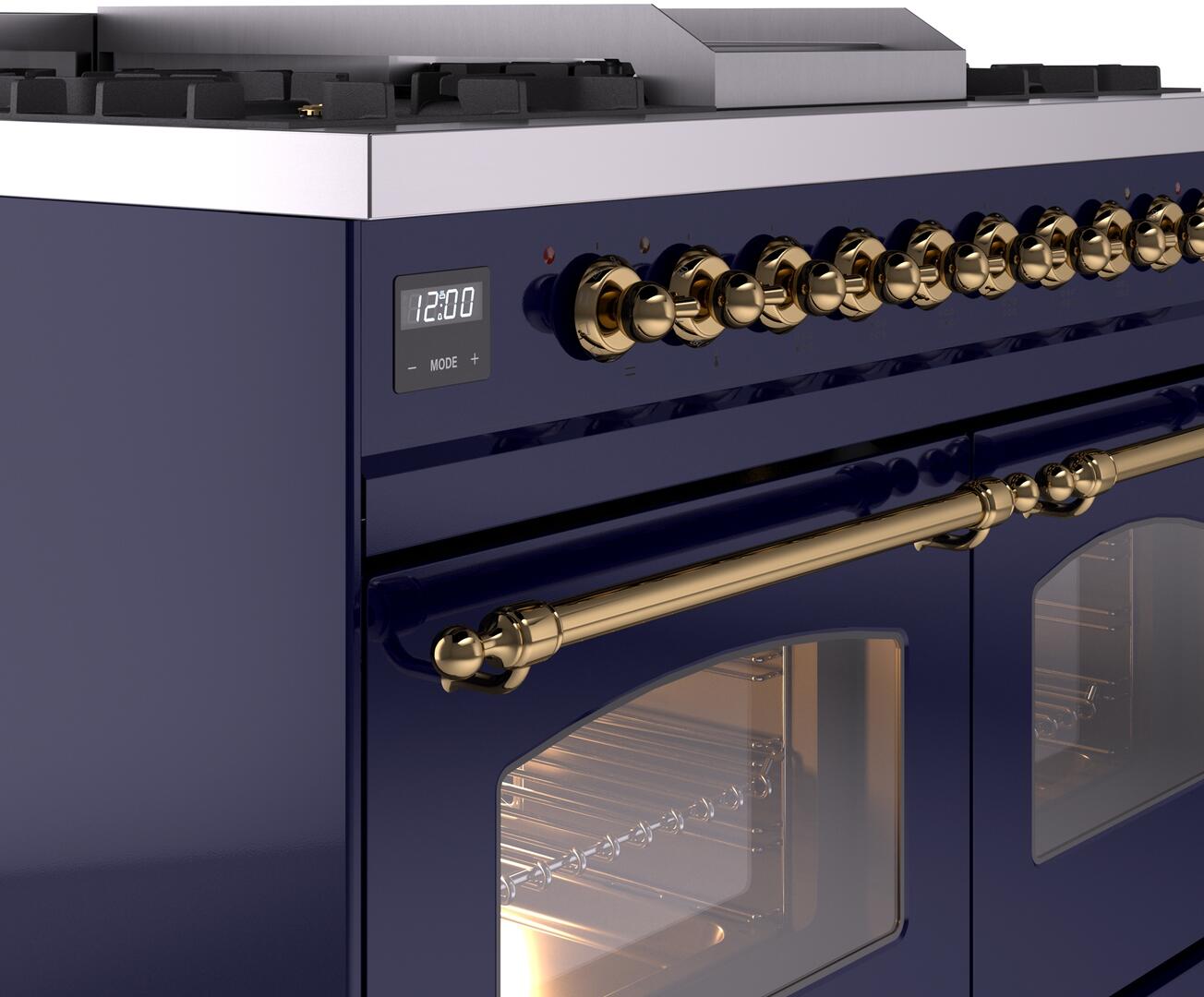ILVE Nostalgie II 40" Dual Fuel Natural Gas Range in Blue with Brass Trim, UPD40FNMPMBG