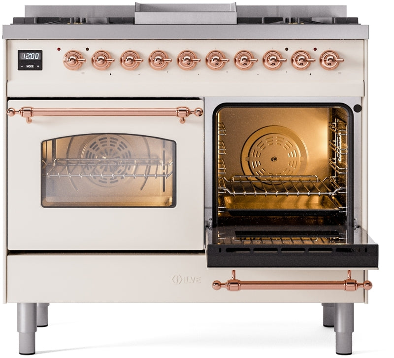 ILVE Nostalgie II 40" Dual Fuel Propane Gas Range in Antique White with Copper Trim, UPD40FNMPAWPLP