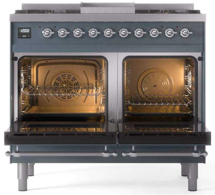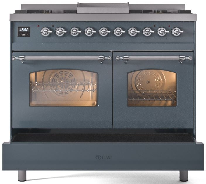 ILVE Nostalgie II 40" Dual Fuel Propane Gas Range in Blue Grey with Chrome Trim, UPD40FNMPBGCLP