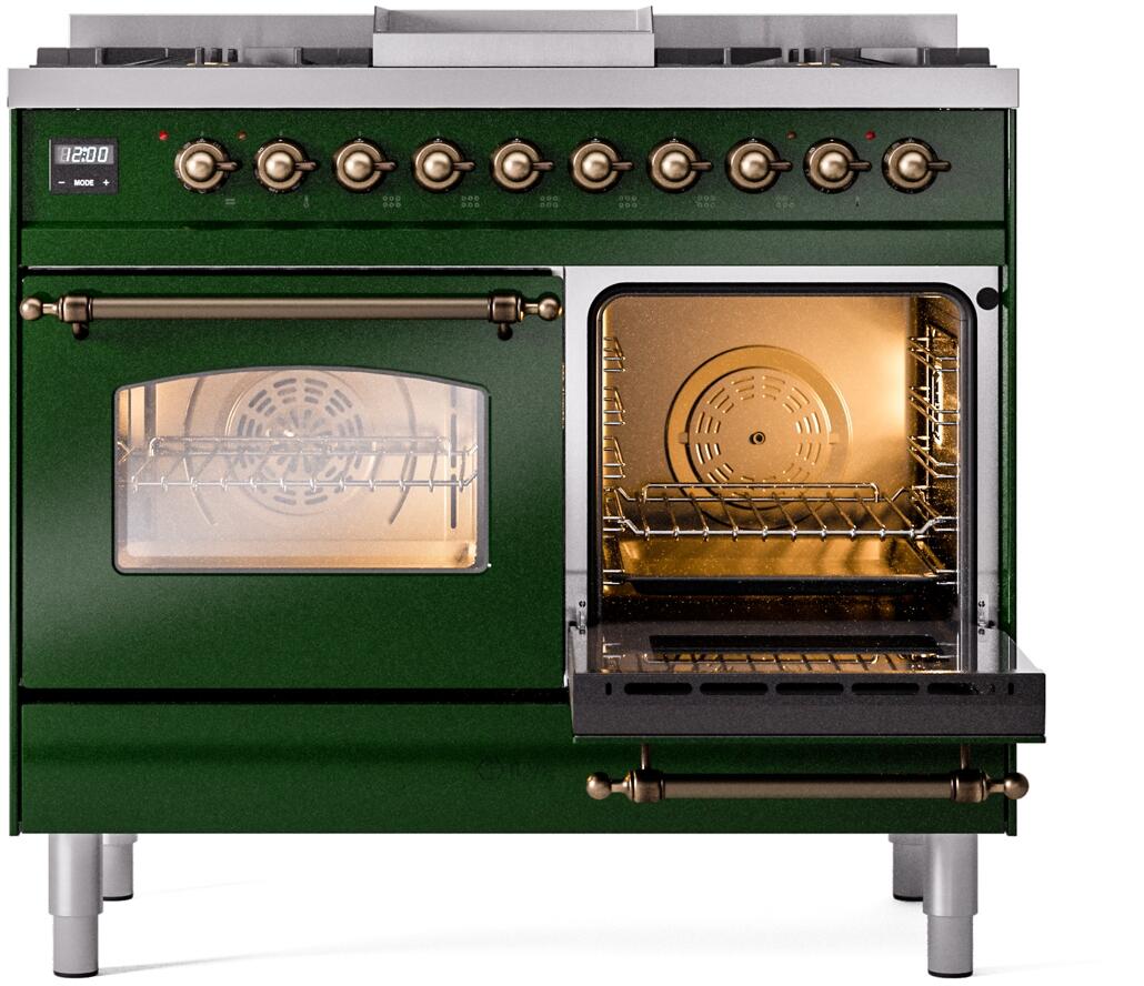 ILVE Nostalgie II 40" Dual Fuel Propane Gas Range in Emerald Green with Bronze Trim, UPD40FNMPEGBLP