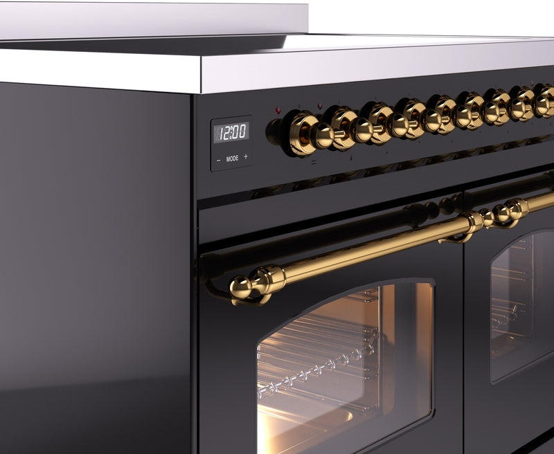 ILVE Nostalgie II 40" Induction Range with Element Stove and Electric Oven in Black with Brass Trim, UPDI406NMPBKG