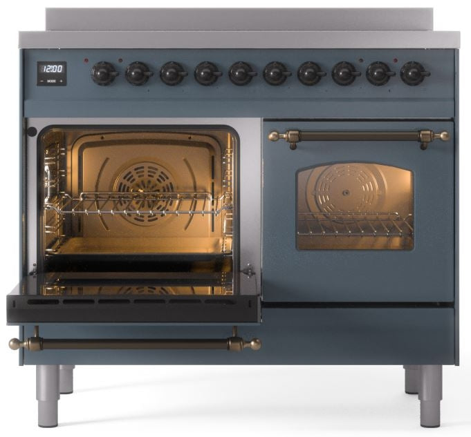 ILVE Nostalgie II 40" Induction Range with Element Stove and Electric Oven in Blue Grey with Bronze Trim, UPDI406NMPBGB