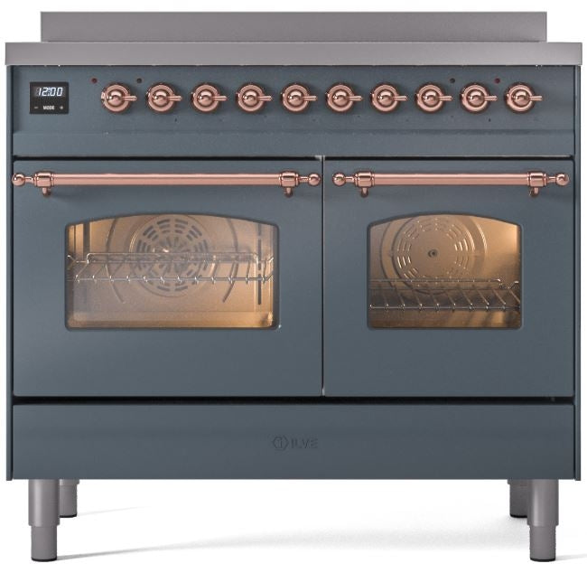 ILVE Nostalgie II 40" Induction Range with Element Stove and Electric Oven in Blue Grey with Copper Trim, UPDI406NMPBGP