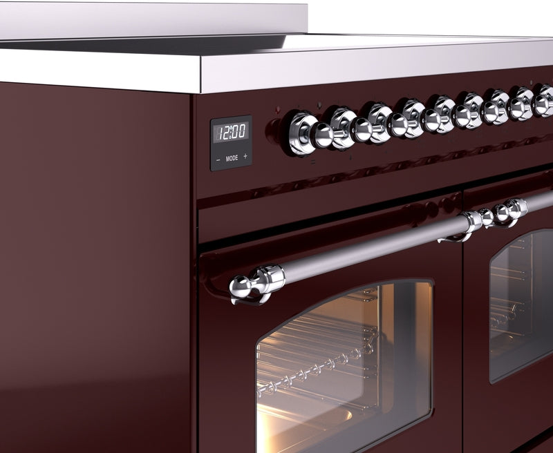 ILVE Nostalgie II 40" Induction Range with Element Stove and Electric Oven in Burgundy with Chrome Trim, UPDI406NMPBUC