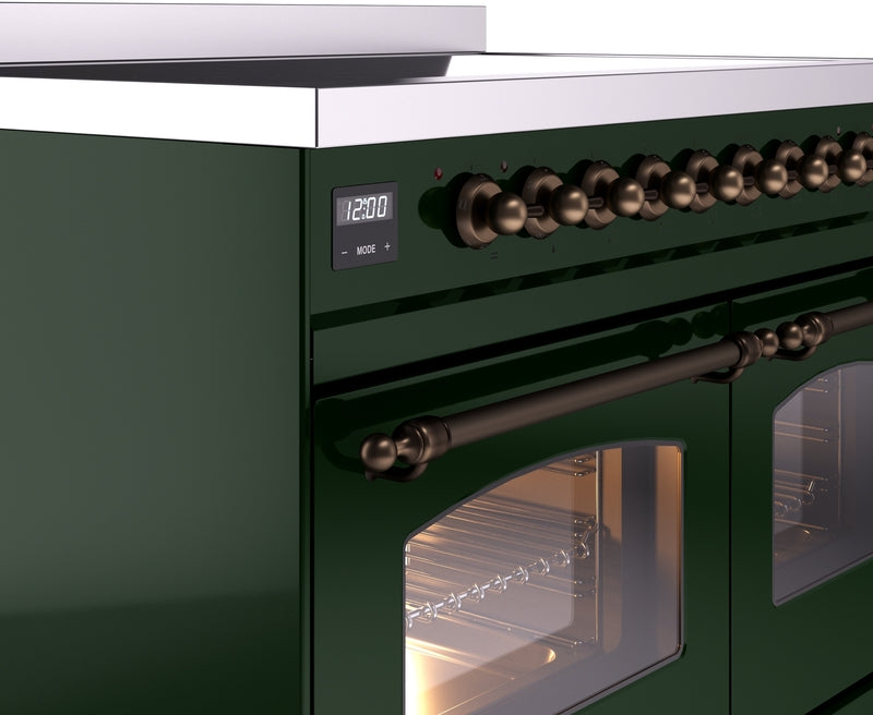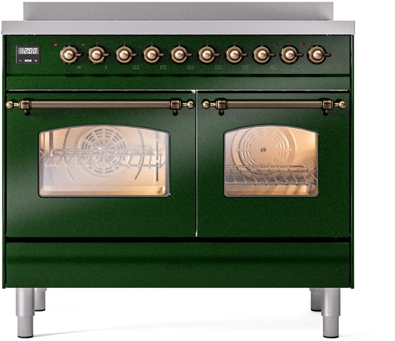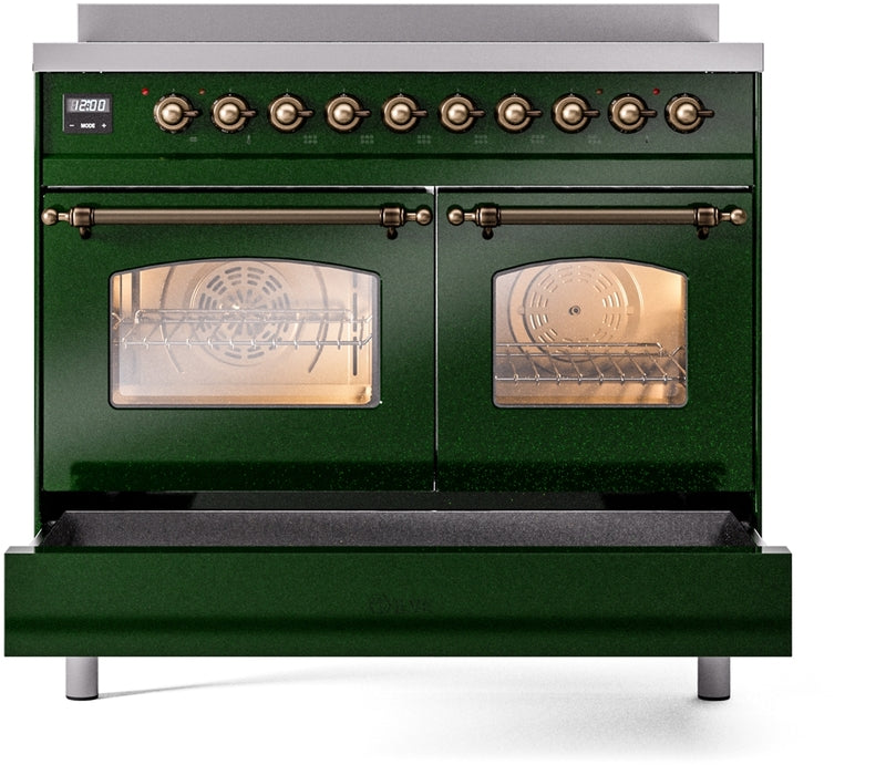 ILVE Nostalgie II 40" Induction Range with Element Stove and Electric Oven in Emerald Green with Bronze Trim, UPDI406NMPEGB