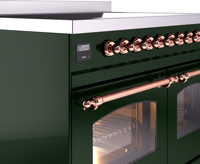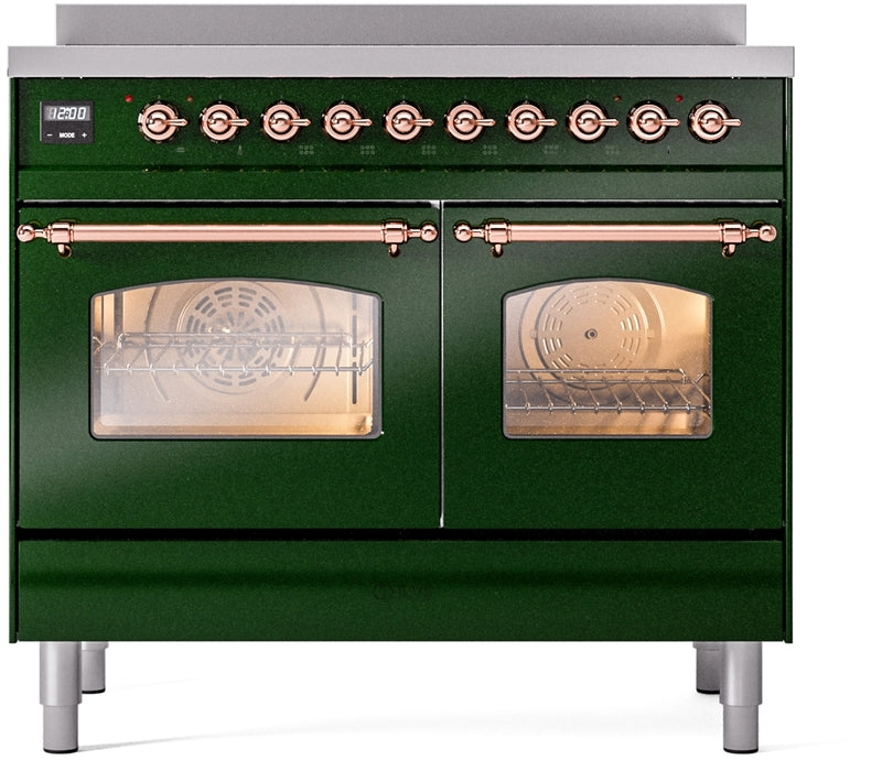 ILVE Nostalgie II 40" Induction Range with Element Stove and Electric Oven in Emerald Green with Copper Trim, UPDI406NMPEGP