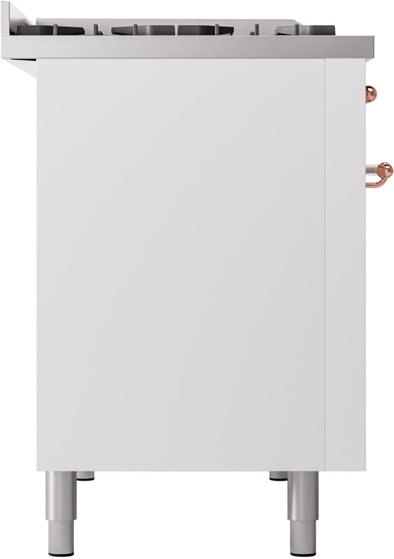 ILVE Nostalgie II 48" Dual Fuel Propane Gas Range in White with Copper Trim, UP48FNMPWHPLP