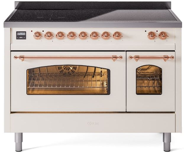 ILVE Nostalgie II 48" Induction Range with Element Stove and Electric Oven in Antique White with Copper Trim, UPI486NMPAWP