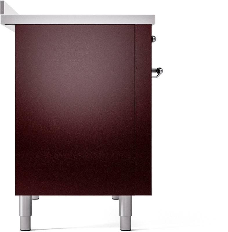 ILVE Nostalgie II 48" Induction Range with Element Stove and Electric Oven in Burgundy with Chrome Trim, UPI486NMPBUC