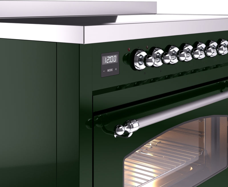 ILVE Nostalgie II 48" Induction Range with Element Stove and Electric Oven in Emerald Green with Chrome Trim, UPI486NMPEGC