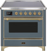 ILVE Majestic II 36" Induction Range with Element Stove and Electric Oven in Blue Grey with Brass Trim, UMI09NS3BGG