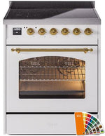 ILVE Nostalgie II 30" Induction Range with Element Stove and Electric Oven in RAL Custom Color with Brass Trim, UPI304NMPRAG