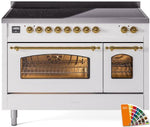 ILVE Nostalgie II 48" Induction Range with Element Stove and Electric Oven in RAL Custom Color with Brass Trim, UPI486NMPRAG