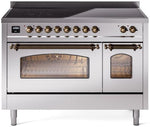 ILVE Nostalgie II 48" Induction Range with Element Stove and Electric Oven in Stainless Steel with Bronze Trim, UPI486NMPSSB