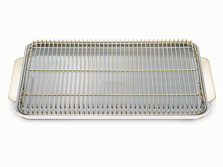 Meet your ultimate baking companion – the Large Baking Sheet & Cooling Rack Duo, tailored to cater to all your baking essentials. Simplify your culinary journey with this dynamic duo designed to elevate your kitchen experience. Crafted to perfection, the 18" x 13" Large Baking Sheet boasts a non-toxic, naturally smooth ceramic surface, while its dimensions perfectly accommodate the 18" x 13" stainless steel Cooling Rack, allowing seamless nesting.