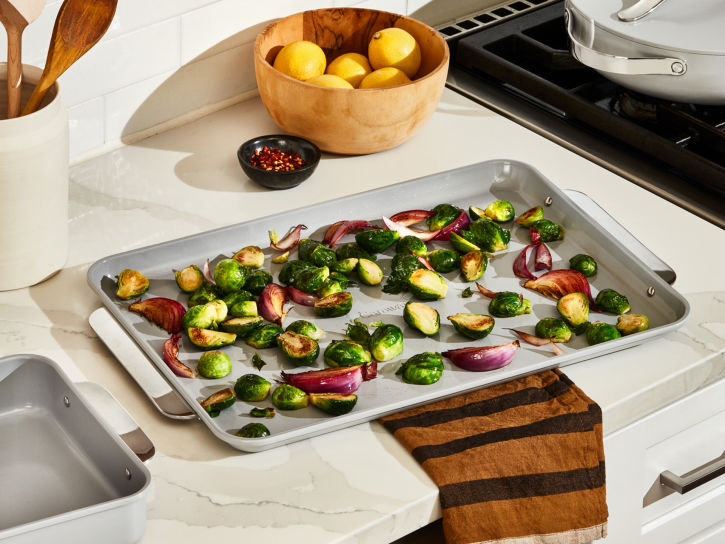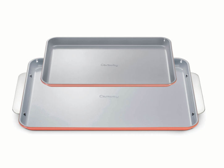 Providing the perfect addition to any kitchen, the Caraway Baking Sheet Duo is designed to make baking an effortless process. Exuding luxury, this oven-ready pair of 18x13" Large & 15x10" Medium Baking Sheets feature a sleek non-toxic ceramic coating, allowing for healthier baking and a worry-free clean up.