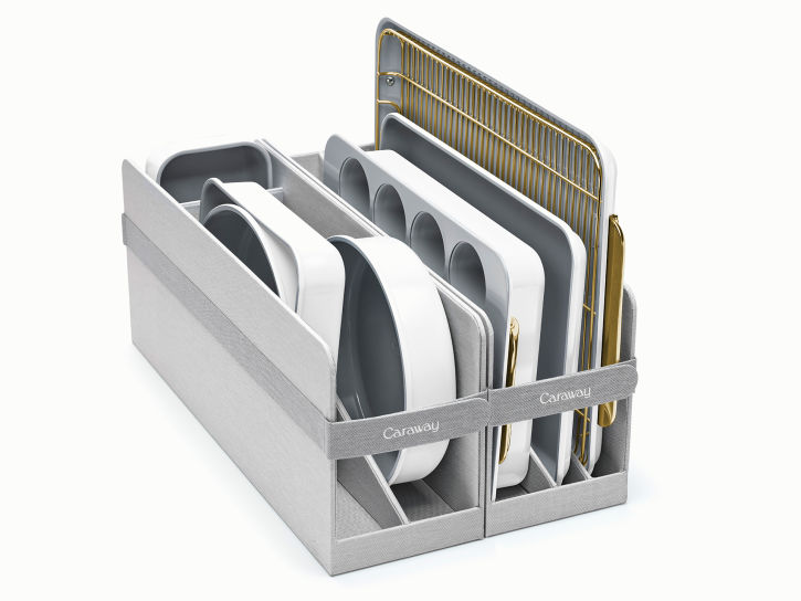 Caraway's next generation 11-piece bakeware set includes nine versatile baking products and two storage systems that will blow your mind!