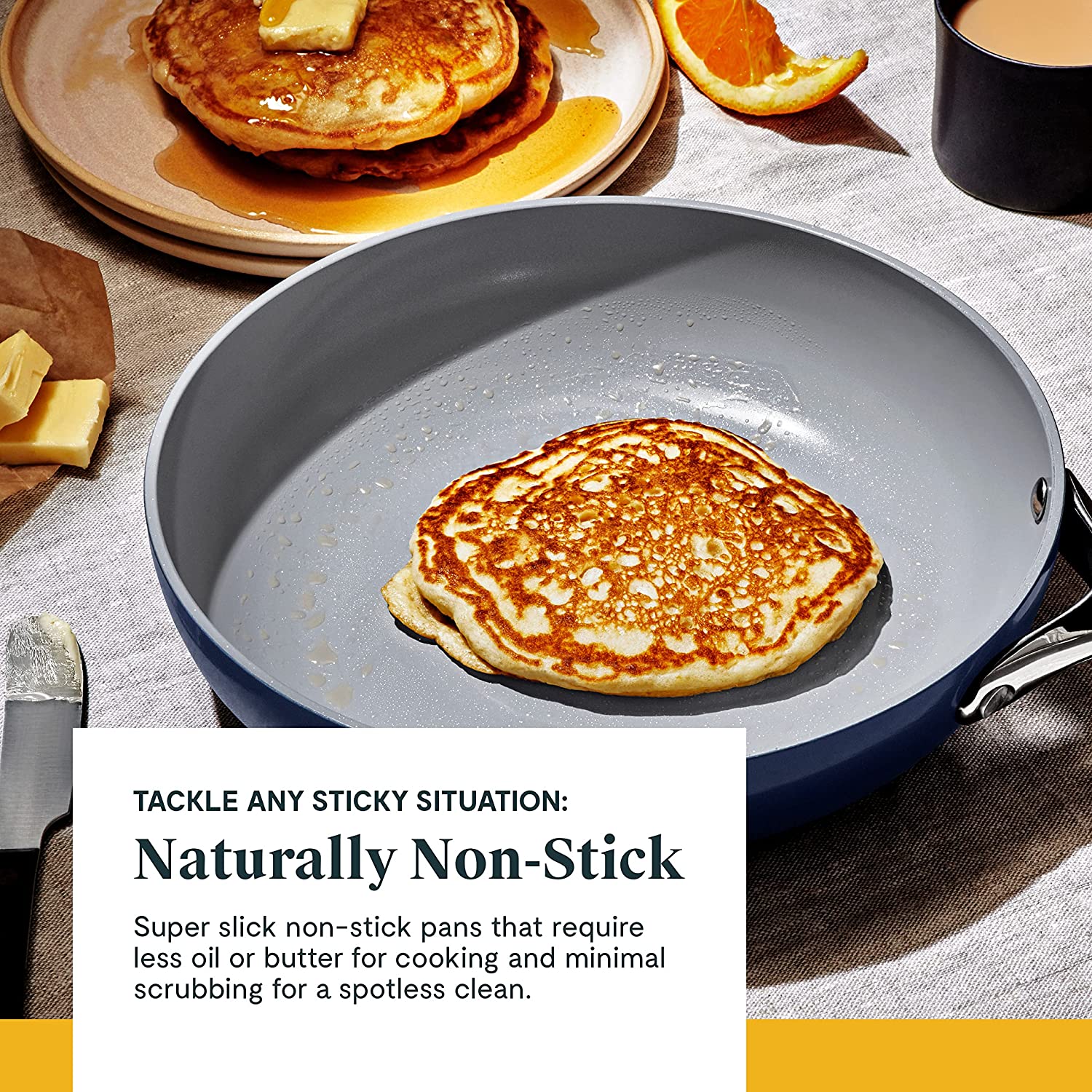 Non-Stick. Naturally slick pans that require less oil or butter for cooking and less scrubbing for a spotless clean refresh.